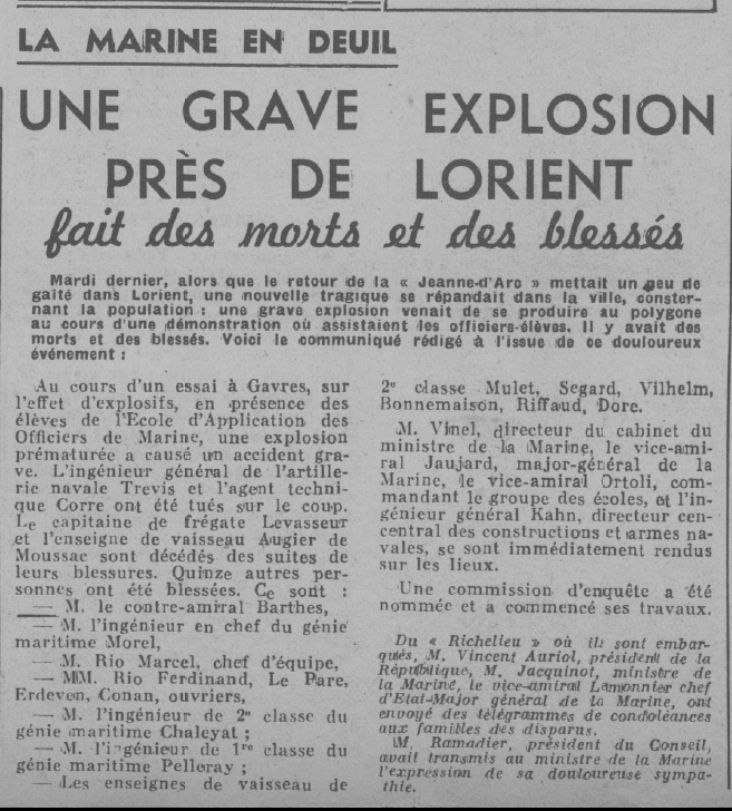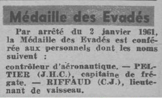 message tombe: "L'enseigne de vaisseau Claude Riffaud est détaché à