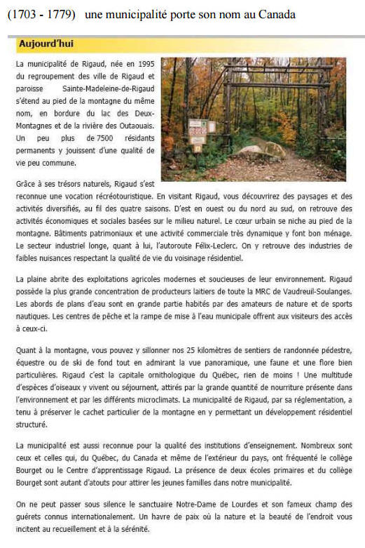 la seigneurie de Rigaud contiguë à celle de Vaudreuil sur la rivière