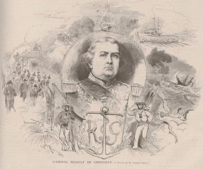 1858, Rigault de Genouilly est promu vice-amiral, et nommé