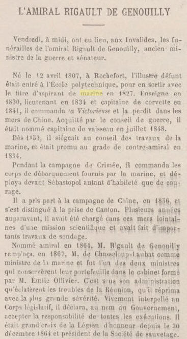 maritime, Jean-Charles Rigault de Genouilly, et le petit neveu de l'amiral