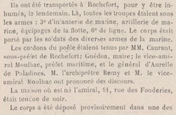 Sa sépulture est à Rochefort après que son corps fut déposé du 10