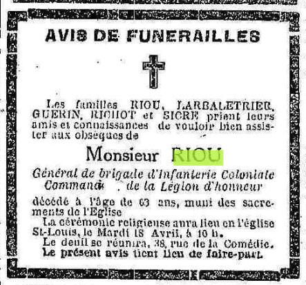 d'Honneur le 12 juillet 1906, étant Général de brigade.