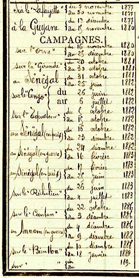 service au 4ème RIMA à la GUYANE (Marie Henri NOYER, Chef de
