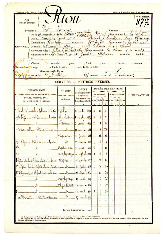 à PARIS (Seine) - Décédé le 15 avril 1916 à LORIENT (Morbihan).