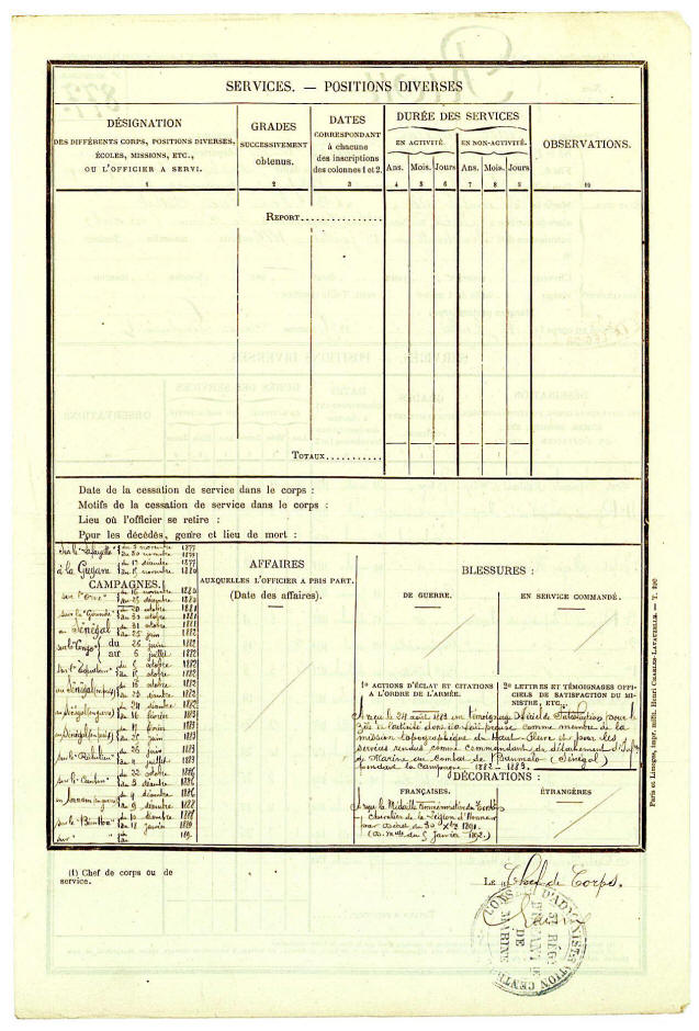 1897, Commandant le 2ème Régiment de Tirailleurs tonkinois.