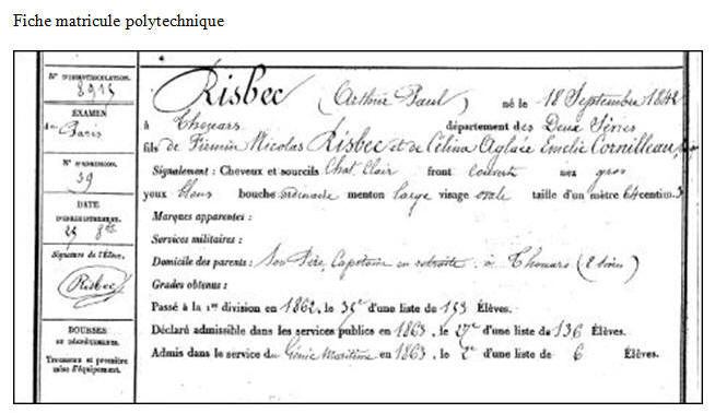 Sous ingénieur de 1ère & 2ème classe le 12 novembre 1868; BREST