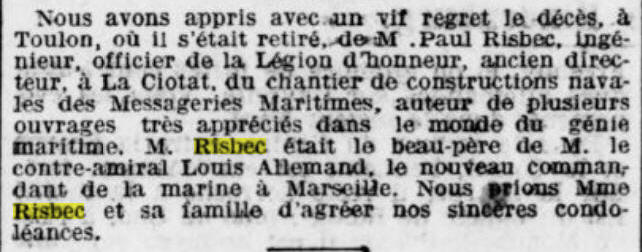 Ingénieur en chef des messageries maritimes à LA CIOTAT