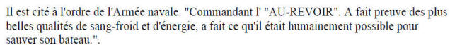 de l'Armée navale. "Commandant l' "AU-REVOIR". A fait preuve des