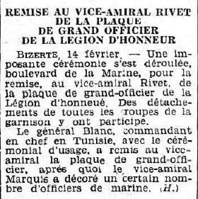 BIZERTE en juin 1940, il quitte le service actif en août.