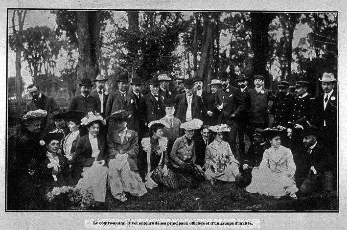 Français : Le contre-amiral Rivet entouré de ses principaux