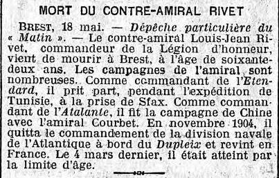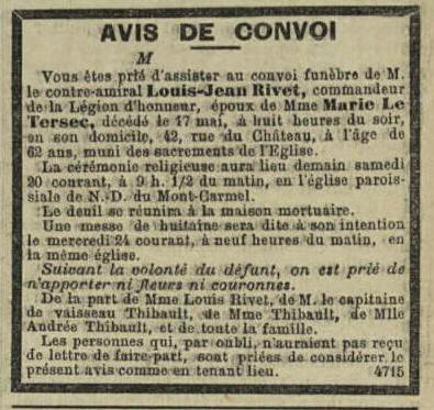 BREST (Finistère) - Décédé le 17 mai 1905 à BREST (Finistère)