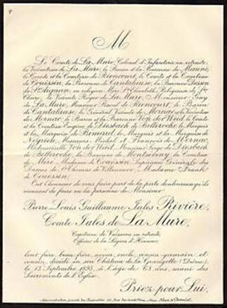 Frédéric Rivière de la Mure et de Victoire Julie Azélie de MIRABEL,