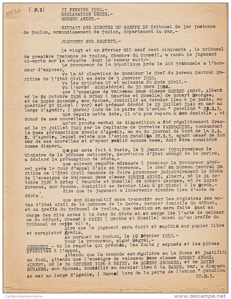 d’Agadir le 22 juillet 1949 sur un hydravion Catalina de