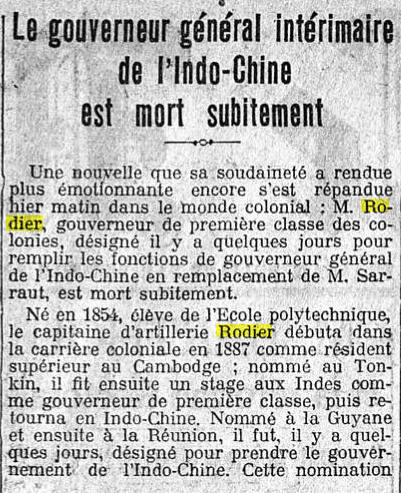 janvier 1913, étant Gouverneur de 1ère classe des Colonies;