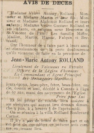 Décédé le 8 juin 1907 à CANNES (Alpes-Maritimes).