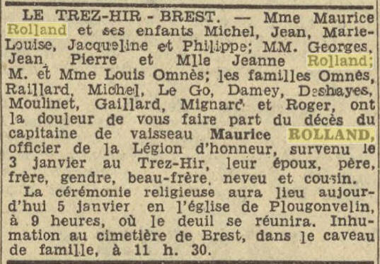 Extrait La Dépêche de Brest / 5 janvier 1943