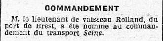 1ère classe le 5 octobre 1915. Au 1er janvier 1818, port BREST.