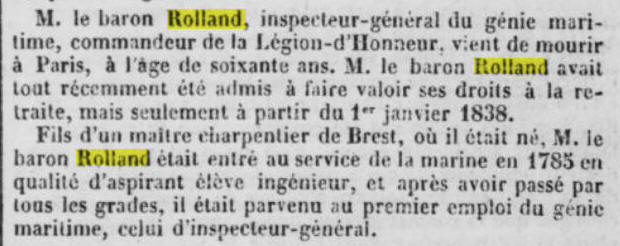 […] M. le baron Rolland, inspecteur général du génie maritime, que