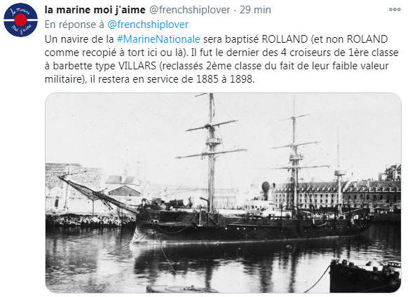 Une corvette à vapeur de 1re classe, le Roland, porta son nom Mise