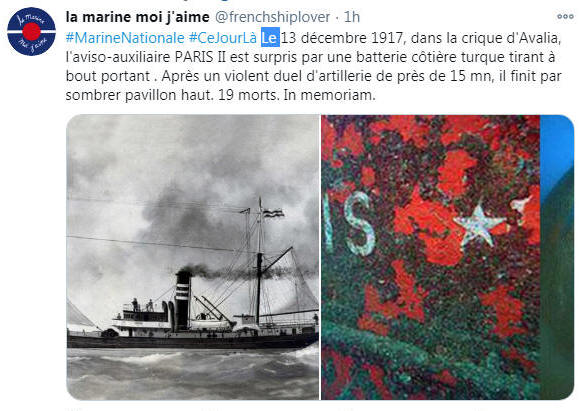 l'Armée navale en 1919 : "ex commandant du PARIS II, a été attaqué à