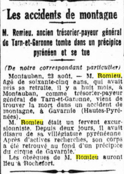 (Charente-Maritime) - Décédé le 20 août 1934 à GAVARNIE (Hautes