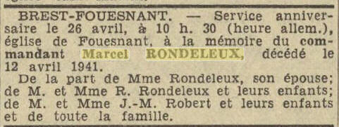 MINES (allier) - Décédé le 12 avril 1941 à LA FORÊT FOUESNANT