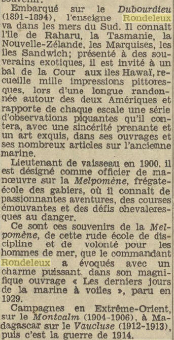 sur le croiseur "DUBOURDIEU", Division navale de l'Océan Pacifique