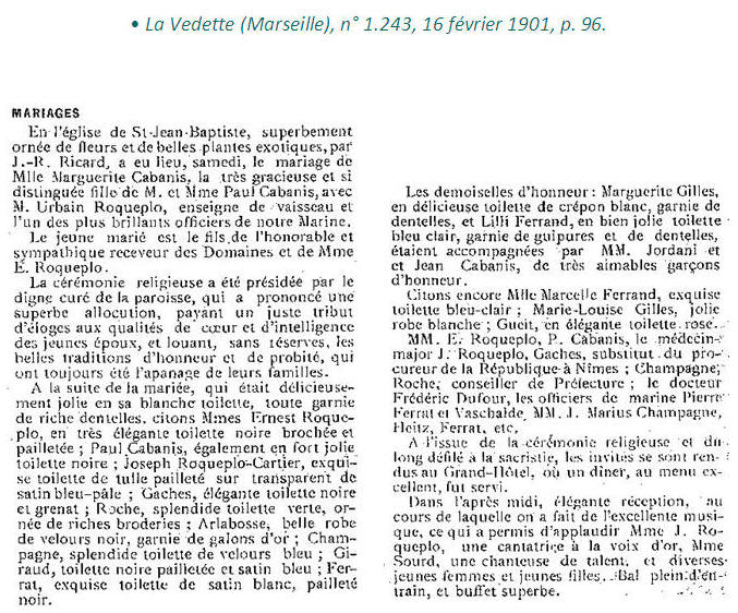 1901 à Marseille avec Marguerite CABANIS. En 1919, domicilié à