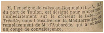 Désigné pour embarquer sur le croiseur Latouche-Tréville, de
