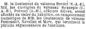 1902, Lieutenant de la 1ère compagnie à l'École des Fusiliers Marins