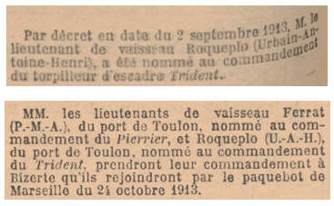 d’escadre Trident (J.O., 4 sept. 1913, p. 7.924). Prend ce