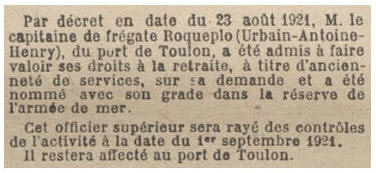 retraite et nommé avec son grade dans la réserve de l’armée de mer,