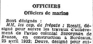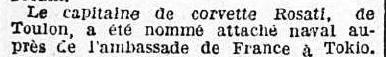 Commandant l'aviso "CRAONNE", Division navale d'Extrême-Orient.