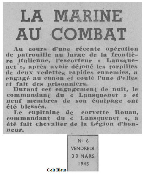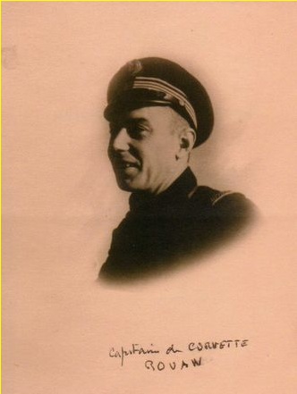 "Le capitaine de corvette Rouan, commandant l'escorteur Lansquenet,