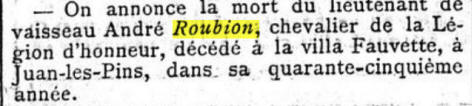 ANTIBES (Alpes-Maritimes) - Décédé le 6 août 1912 à ANTIBES
