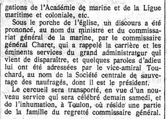 Le 6 avril 1903, nommé Commissaire général du 4ème arrondissement