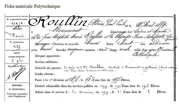 Élève de l'École polytechnique en 1877, opte pour la Marine.