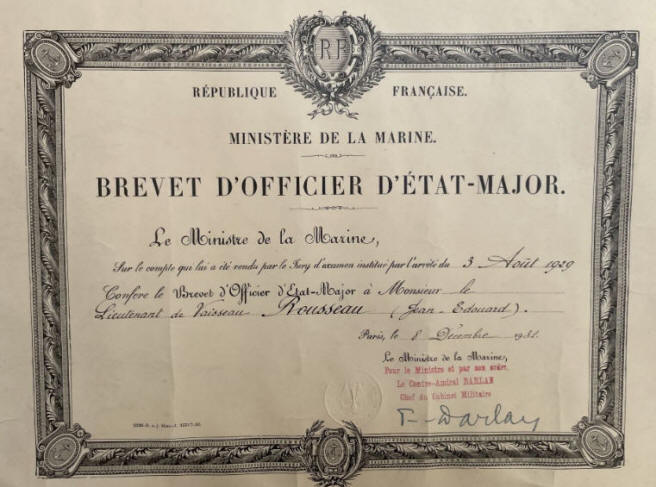 l'École Supérieure de la Marine en 1931.