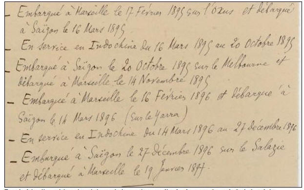 Embarqué sur le transport de guerre Ben Hoa de mars 1891 à juin