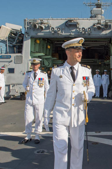 Promu capitaine de corvette le 1er septembre 2003, embarque le même jour sur le porte-avions » Charles de Gaulle » où