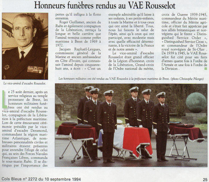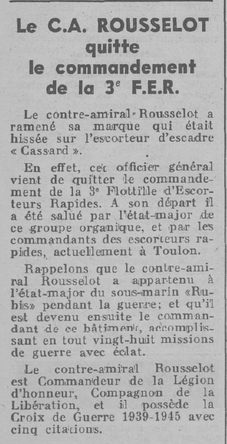 Après la guerre, Henri Rousselot est nommé capitaine de frégate. De