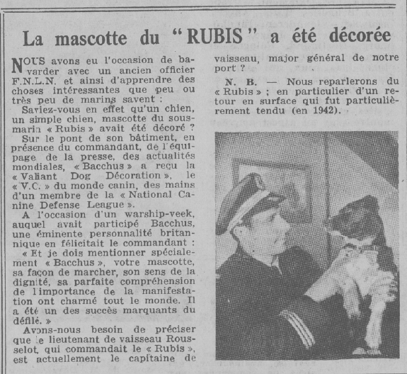Sous le commandement du capitaine de corvette Rousselot, le Rubis a