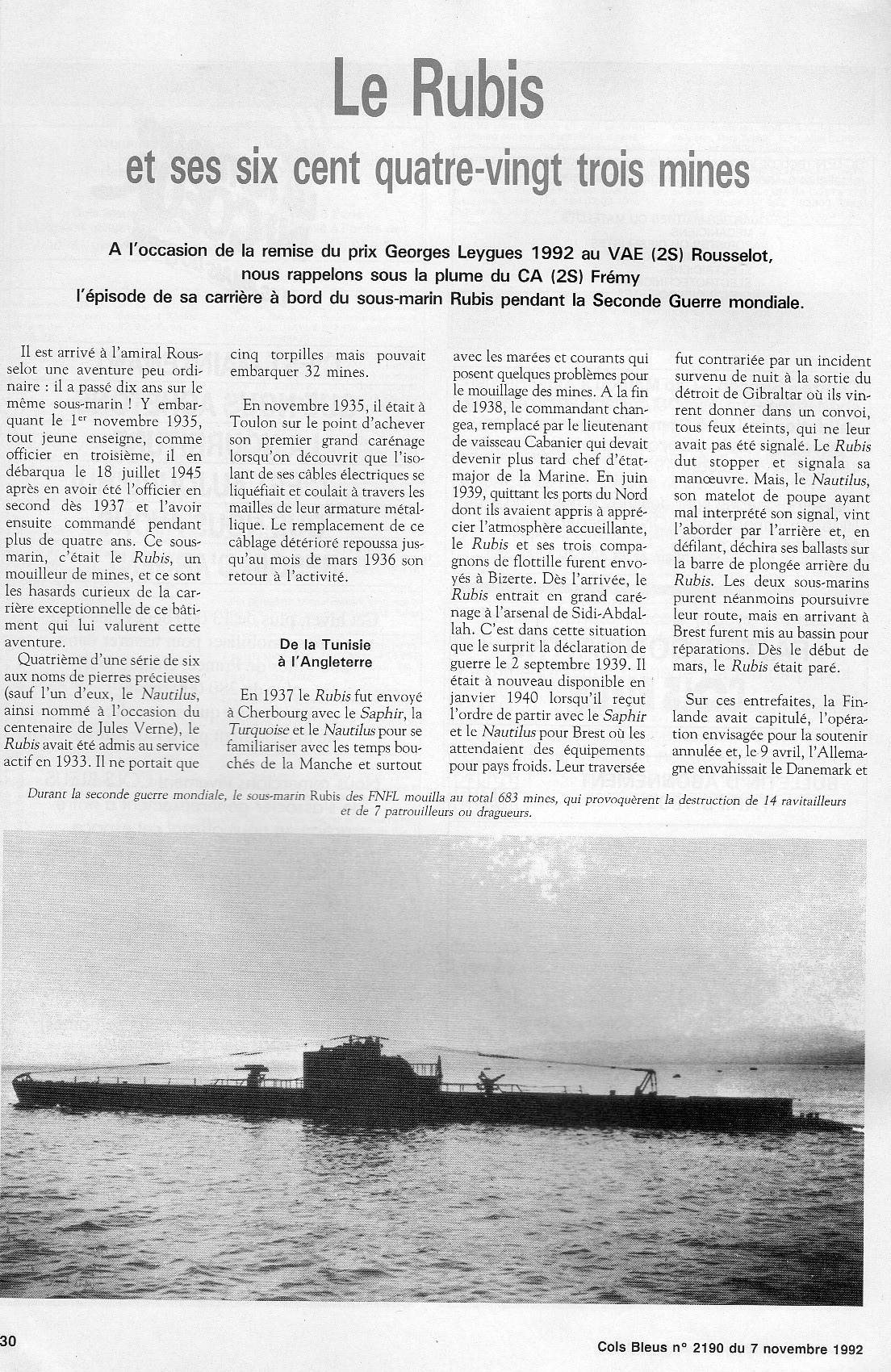 En mai 1940, Henri Rousselot est officier en second du Rubis mis à