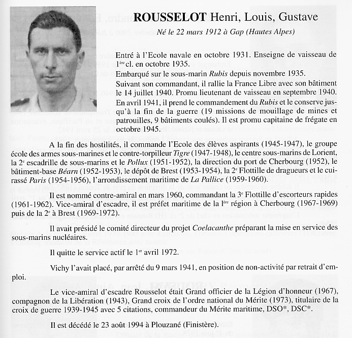 Promu lieutenant de vaisseau en septembre 1940, Henri Rousselot