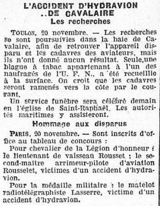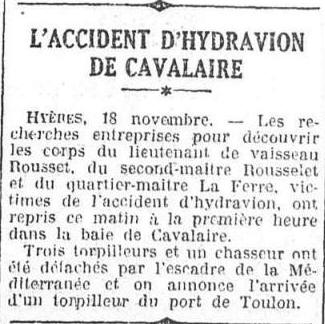 disparait en baie de CAVALAIRE (Var), à bord de l'hydravion