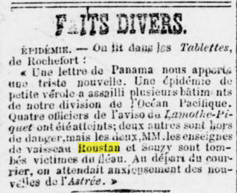 le 4 avril 1848, dcd en 1869 à Cayenne , Médecin de la Marine