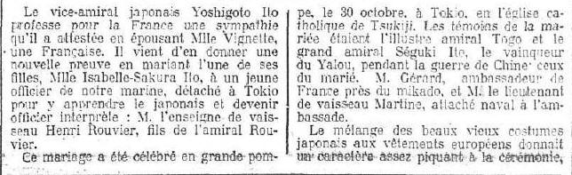 1909 à TOKYO (Japon) avec Isabelle Sakurako ITO
