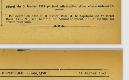 Au 1er janvier 1954, Commandant la Marine au Centre VIETNAM à