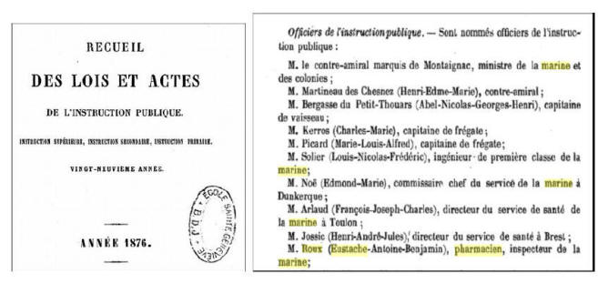 Pharmacien en chef de 1ère classe le 7 juillet 1855.