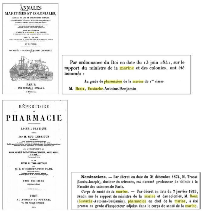 Aux 1er janvier 1847, 1849, Officier de santé professeur à BREST.